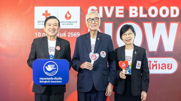 บริษัท กรุงเทพประกันภัย จำกัด (มหาชน) โดยนายธีรยุทธ กิจวรพัฒน์ (ซ้ายสุด) ผู้อำนวยการ ธุรกิจสาขา เป็นตัวแทนมอบเงินจำนวน 1,000,000 บาท ให้แก่สภากาชาดไทย โดยมีนายเตช บุนนาค (กลาง) เลขาธิการสภากาชาดไทย และรองศาสตราจารย์ แพทย์หญิงดุจใจ ชัยวานิชศิริ (ขวาสุด) ผู้อำนวยการศูนย์บริการโลหิตแห่งชาติ สภากาชาดไทย เป็นผู้รับมอบในพิธีแถลงข่าวโครงการ Give Blood Now – ให้เลือด ให้ได้ ให้เลย เพื่อสนับสนุนการจัดทำเสื้อยืดที่ระลึกให้แก่ผู้บริจาคเลือดครบ 3 ครั้งต่อปี และส่งเสริมให้มีการบริจาคโลหิตอย่างต่อเนื่อง ณ ห้องจุมภฏ ชั้น 9 อาคารเฉลิมพระเกียรติบรมราชินีนาถ ศูนย์บริการโลหิตแห่งชาติ เมื่อวันที่ 10 กุมภาพันธ์ 2569