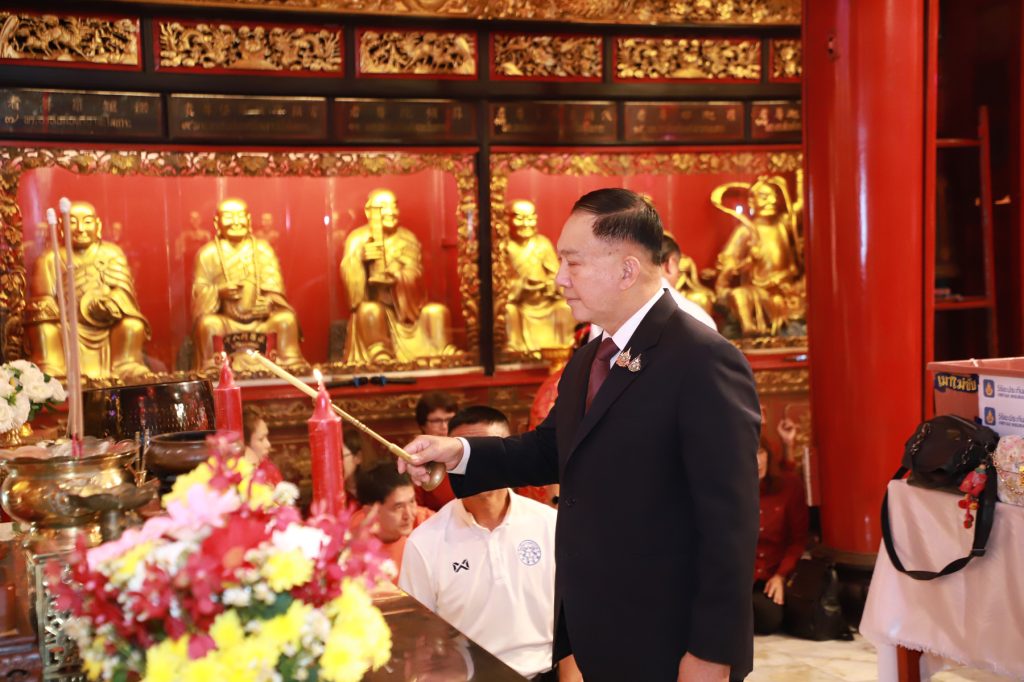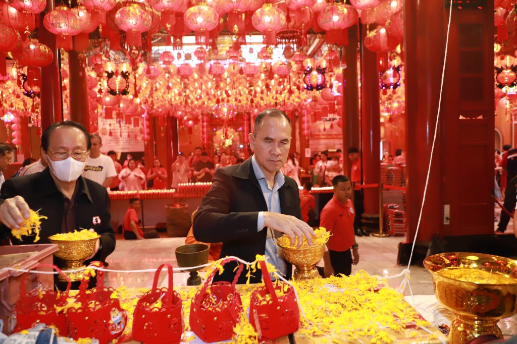 ทั้งนี้ พิธีกรรมดังกล่าว ได้รับเมตตาจาก พระคณาจารย์จีนธรรมวชิรานุวัตร เจ้าอาวาสวัดมังกรกมลาวาส (วัดเล่งเน่ยยี่) เป็นประธานพิธีฝ่ายสงฆ์ ประกอบการปลุกเสกเหรียญเทพเจ้าไท้ส่วยเอี๊ย เพื่อเป็นเครื่องเตือนสติให้กับพี่น้องประชาชน ตระหนักถึงความปลอดภัยในการใช้รถใช้ถนน พร้อมเสริมความเป็นสิริมงคลในช่วงเทศกาลตรุษจีน ณ วัดมังกรกมลาวาส (วัดเล่งเน่ยยี่) เขตป้อมปราบศัตรูพ่าย กรุงเทพมหานคร