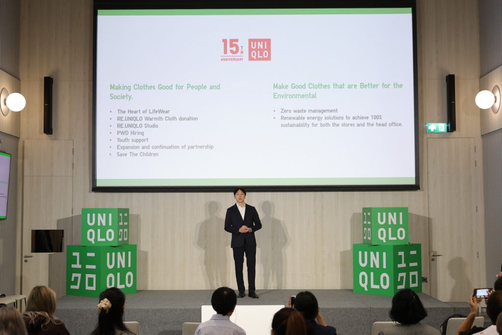 มร. โยชิทาเกะ วาคากุวะ ประธานเจ้าหน้าที่บริหาร บริษัท ยูนิโคล่ (ประเทศไทย) จำกัด กล่าวว่า “ตลอด 15 ปี ที่ยูนิโคล่เริ่มดำเนินธุรกิจในประเทศไทย เราไม่ได้เพียงขยายร้านสาขาเพื่อให้คนไทยเข้าถึงไอเทมไลฟ์แวร์เพียงอย่างเดียวเท่านั้น ยูนิโคล่ได้ขับเคลื่อนกิจกรรมด้านความยั่งยืนควบคู่กันไปด้วย เพื่อมอบคุณภาพชีวิตที่ดีให้คนไทย และสร้างสังคมที่น่าอยู่ในประเทศไทย เราลงมือทำกิจกรรมด้านความยั่งยืนอย่างครบวงจร ทั้งสิ่งแวดล้อม สังคม และชุมชน ผ่านกิจกรรมระดับโลกของบริษัทแม่ในเมืองไทย รวมถึงริเริ่มโครงการด้านความยั่งยืนต่างๆ ซึ่ง ยูนิโคล่ ประเทศไทย ริเริ่มขึ้นมาเพื่อตอบสนองกับสังคมไทยโดยเฉพาะ ผ่านการร่วมมือกับทั้งภาครัฐและภาคเอกชน เรายังคงมุ่งมั่นเดินหน้าสานต่อโครงการและกิจกรรมด้านความยั่งยืนของยูนิโคล่ ประเทศไทย อย่างต่อเนื่อง เพื่อเป้าหมายในการยกระดับคุณภาพชีวิตของคนไทยและสังคมไทย”