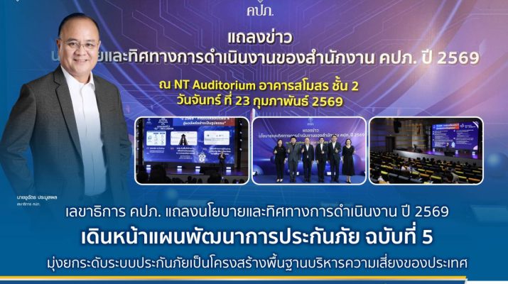 สำนักงานคณะกรรมการกำกับและส่งเสริมการประกอบธุรกิจประกันภัย (สำนักงาน คปภ.) ประกาศนโยบายและทิศทางการดำเนินงานของสำนักงาน คปภ. ประจำปี 2569 เดินหน้าแผนพัฒนาการประกันภัย ฉบับที่ 5 (พ.ศ. 2569 – 2573) อึด – รับ – ทั่ว – ล้ำ สู่การปฏิบัติอย่างเป็นรูปธรรม
