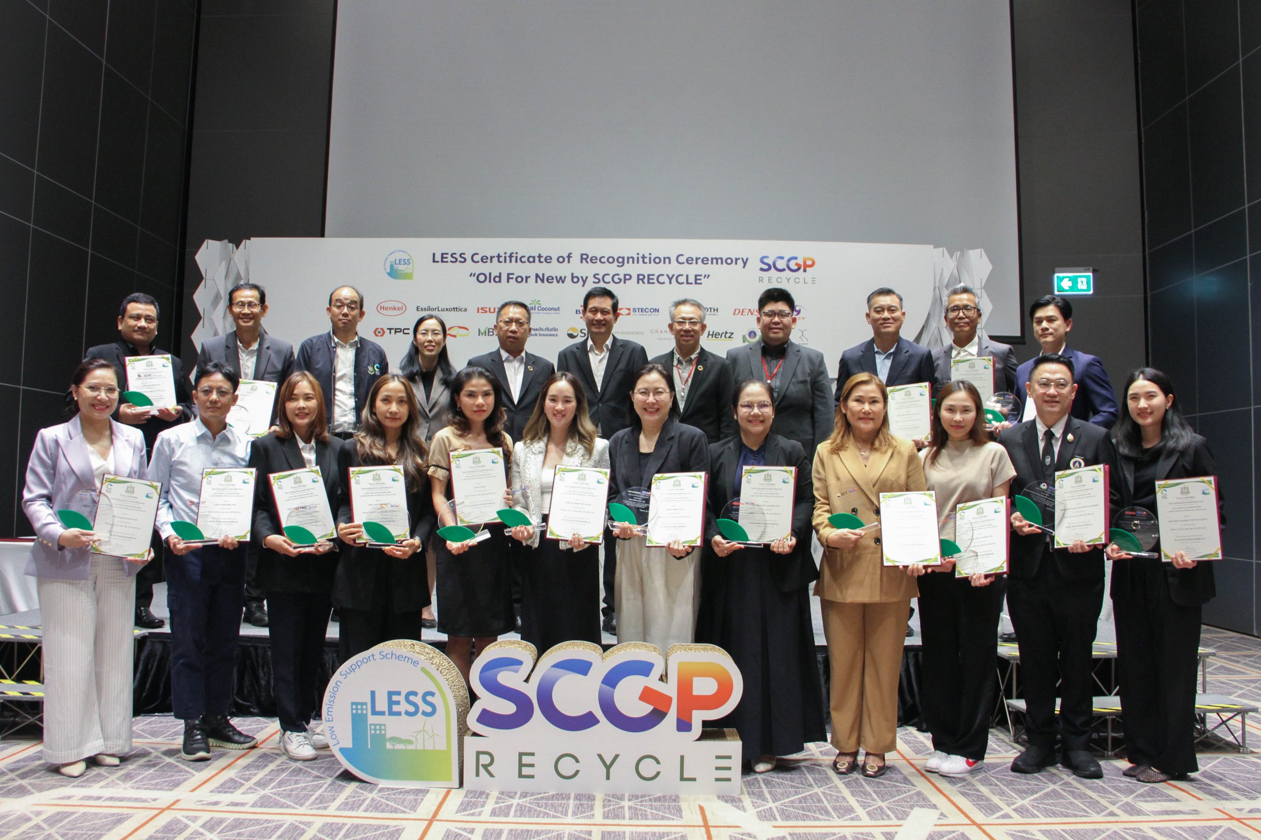 องค์การบริหารจัดการก๊าซเรือนกระจก (องค์การมหาชน) (อบก.) โดย นายณกรณ์ ตรรกวิรพัท ผู้อำนวยการองค์การบริหารจัดการก๊าซเรือนกระจก และ SCGP ร่วมมอบใบประกาศเกียรติคุณและโล่รางวัล ให้แก่เครือข่ายพันธมิตรรวม 22 องค์กร ที่เข้าร่วมโครงการ “Old For New” ซึ่งเป็นความร่วมมือในการบริหารจัดการกระดาษใช้แล้วกลับเข้าสู่กระบวนการรีไซเคิลอย่างเป็นระบบ และสามารถแสดงผลลัพธ์การลดการปล่อยก๊าซเรือนกระจกได้อย่างเป็นรูปธรรม ภายใต้การรับรองโครงการ Low Emission Support Scheme (LESS)