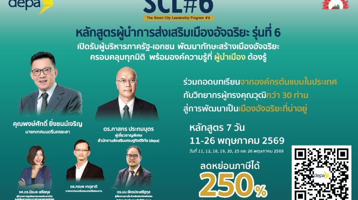 depa สานต่อการพัฒนาผู้บริหารภาครัฐ-เอกชน ต่อยอดสร้างเมืองอัจฉริยะ เปิดหลักสูตรผู้นำการส่งเสริมเมืองอัจฉริยะ (Smart City Leadership Program: SCL) รุ่นที่ 6 (SCL#6) โดยเนื้อหาหลักสูตรครอบคลุมแนวทางการสร้างโครงการเมืองอัจฉริยะน่าอยู่ การประยุกต์ใช้เทคโนโลยีดิจิทัลในทุกมิติทั้งบริบทภาครัฐและเอกชน รวมถึงการขับเคลื่อนพัฒนาเมืองอัจฉริยะ ที่ผู้นำเมืองควรรู้ นำโดยผู้ทรงคุณวุฒิกว่า 30 ท่าน พร้อมการถอดแบบการเรียนรู้จากองค์กรในประเทศ เปิดรับสมัครแล้วถึง 6 เมษายน 2569 ดูรายละเอียดได้ทาง https://www.depa.or.th/th/article-view/smart-city-leadership-program-6-scl-6