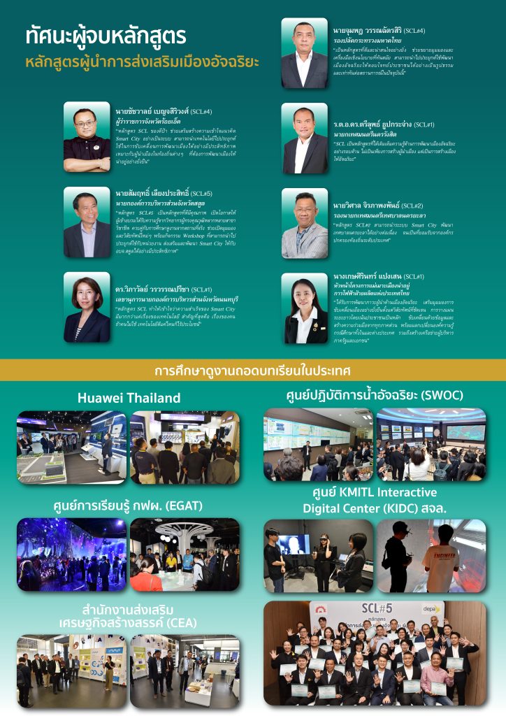 ทั้งนนี้ depa จึงเปิดรับสมัครหลักสูตรผู้นำการส่งเสริมเมืองอัจฉริยะ (Smart City Leadership Program: SCL) รุ่นที่ 6 เดินหน้ายกระดับศักยภาพผู้บริหารระดับสูงภาครัฐ-เอกชน โดยมีกลุ่มเป้าหมายผู้สมัครคือ ผู้นำเมืองส่วนกลาง ส่วนภูมิภาค และส่วนท้องถิ่น ทั้งผู้ที่มีประสบการณ์และผู้ที่ก้าวเข้าสู่บทบาทใหม่ ผู้ประกอบการภาคเอกชนทุกระดับ ไม่ว่าจะเป็นธุรกิจขนาดใหญ่ ขนาดกลาง หรือขนาดเล็ก ที่มองหาโอกาสใหม่ ๆ ในการพัฒนาและยกระดับองค์กร รวมถึงนักวิชาการและที่ปรึกษา ที่ต้องการมุมมองเชิงลึกและโอกาสในการสร้างเครือข่ายที่แข็งแกร่งและเป็นประโยชน์ เพื่อต่อยอดสร้างเมืองอัจฉริยะ