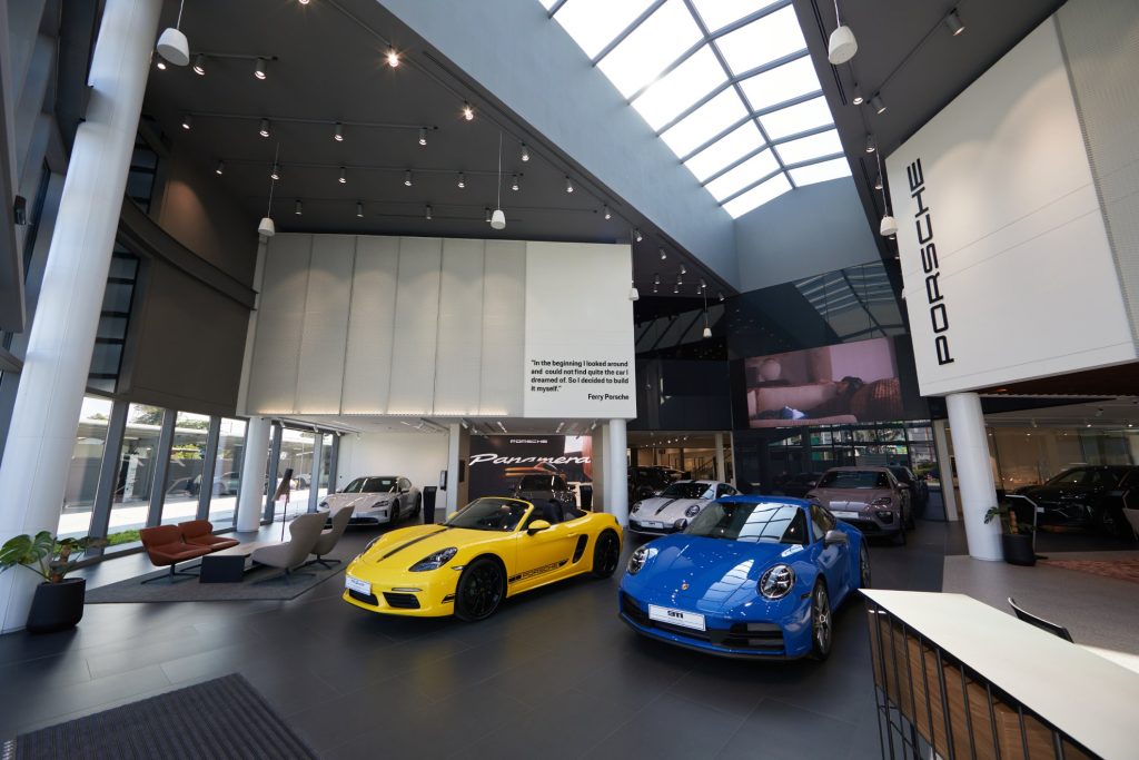 ปอร์เช่มุ่งมั่นในการมีบทบาทเชิงรุกเพื่อกำหนดอนาคตแห่งการเดินทางโดยคำนึงถึงสิ่งแวดล้อมและสังคมควบคู่กัน แนวคิดดังกล่าวสะท้อนผ่านการออกแบบโชว์รูมและศูนย์บริการในเครือข่ายผู้แทนจำหน่าย โดยให้ความสำคัญกับอาคารที่มีการออกแบบระบบพลังงานอย่างมีประสิทธิภาพพร้อมผสานการใช้พลังงานหมุนเวียนภายในพื้นที่ทั้งการใช้พลังงานแสงอาทิตย์และระบบการจัดการน้ำ