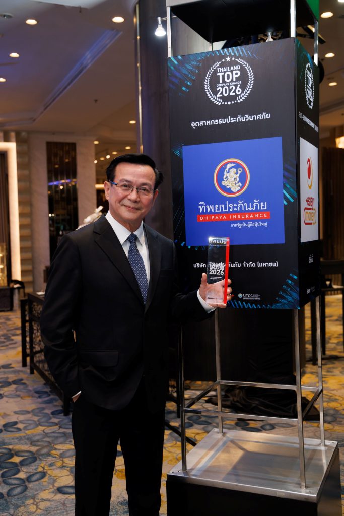 ดร.สมพร สืบถวิลกุล ประธานเจ้าหน้าที่บริหาร บริษัท ทิพย กรุ๊ป โฮลดิ้งส์ จำกัด (มหาชน) และกรรมการผู้จัดการใหญ่ บริษัท ทิพยประกันภัย จำกัด (มหาชน) รับรางวัล “THAILAND TOP COMPANY AWARDS 2026” ประเภทอุตสาหกรรมประกันวินาศภัย ต่อเนื่องเป็นปีที่ 2 จาก ศาสตราจารย์เกียรติคุณ นพ.เกษม วัฒนชัย ในพิธีมอบรางวัล ณ โรงแรมอินเตอร์คอนติเนนตัล กรุงเทพฯ