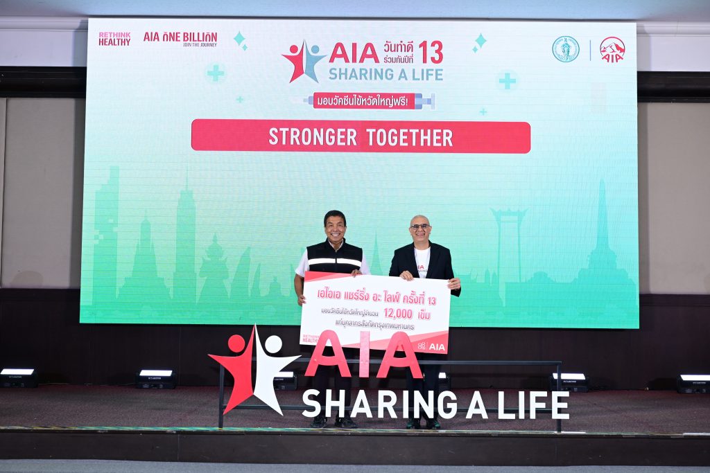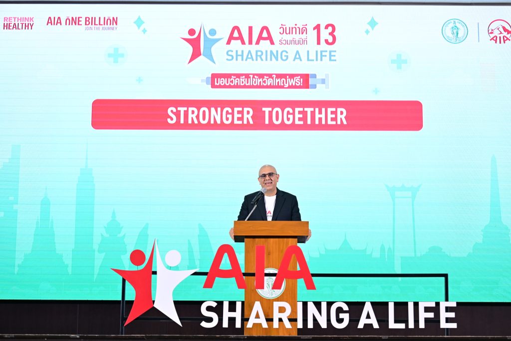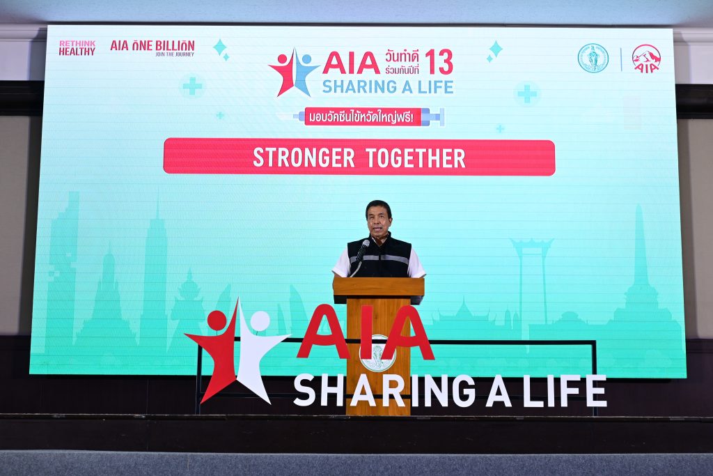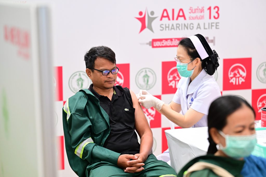เอไอเอ ประเทศไทย สานต่อโครงการเพื่อตอบแทนสังคมประจำปี กับการจัดกิจกรรม เอไอเอ แชร์ริ่ง อะ ไลฟ์ (AIA Sharing A Life) หรือวันทำดีร่วมกันของชาวเอไอเอ ปีที่ 13 โดยปีนี้จัดขึ้นภายใต้แนวคิด “Stronger Together” ด้วยการมอบวัคซีนไข้หวัดใหญ่รวม 15,000 เข็มเพื่อเสริมเกราะป้องกันความรุนแรงของโรคให้แก่คนไทยทั่วประเทศ พร้อมจับมือกับ กรุงเทพมหานคร ต่อเนื่องเป็นปีที่ 2 เพื่อมอบวัคซีนไข้หวัดใหญ่ให้แก่เจ้าหน้าที่เก็บขยะและกวาดถนน ของกรุงเทพมหานครทั้ง 50 เขต รวมทั้งยังขยายการสนับสนุนวัคซีนไปสู่เจ้าหน้าที่ขุดเจาะ สังกัดกรมทรัพยากรน้ำบาดาล ซึ่งเจ้าหน้าที่เหล่านี้นับเป็นกลุ่มเสี่ยงที่ต้องออกมาทำงานในพื้นที่ชุมชนและมีโอกาสสูงที่จะได้รับเชื้อ ซึ่งในงานแถลงข่าว นายชัชชาติ สิทธิพันธุ์ ผู้ว่าราชการกรุงเทพมหานคร ได้ให้เกียรติเป็นประธานในพิธีเปิดกิจกรรม เอไอเอ แชร์ริ่ง อะ ไลฟ์ ครั้งที่ 13 (AIA Sharing A Life 13) ร่วมด้วยพันธมิตรใจดีที่ได้มาร่วมบริการน้ำดื่มและของว่างให้แก่ประชาชนที่มารับบริการฉีดวัคซีน ณ ศาลาว่าการกรุงเทพมหานคร (ดินแดง)